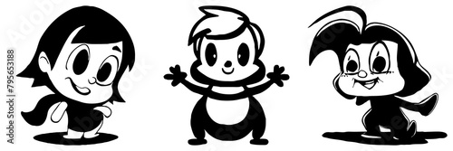 Naklejka premium Black and white cartoon . Pattern for T-shirt, covers. Generated by Ai