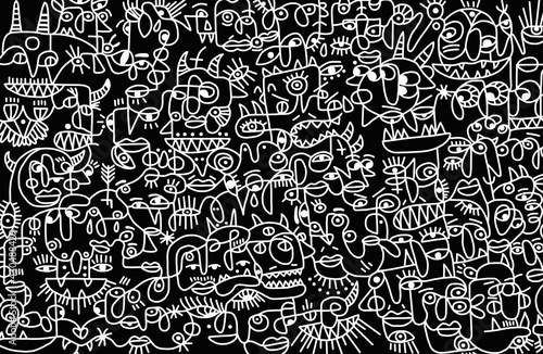 © larisa, Fototapeta premium Black and white cartoon pattern on black background, abstract design