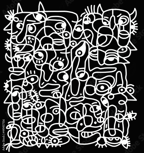 © larisa, Fototapeta premium Black and white cartoon pattern on black background, abstract design
