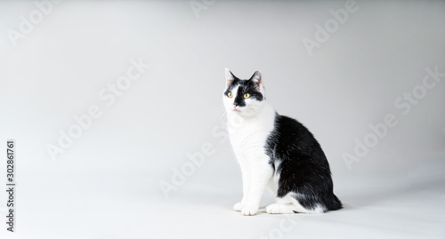 © coldwaterman, Fototapeta premium Black and white cat on a grey background