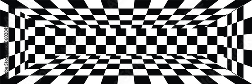 Fototapeta premium Black and White Checkerboard Room Optical Illusion Background
