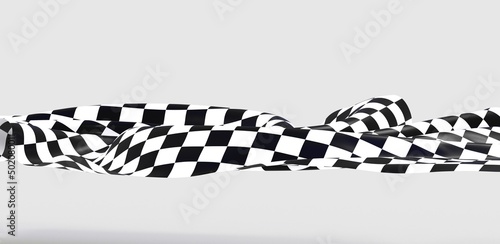 Fototapeta premium Black and white checkered curved flag or ribbon, sport banner on dark background