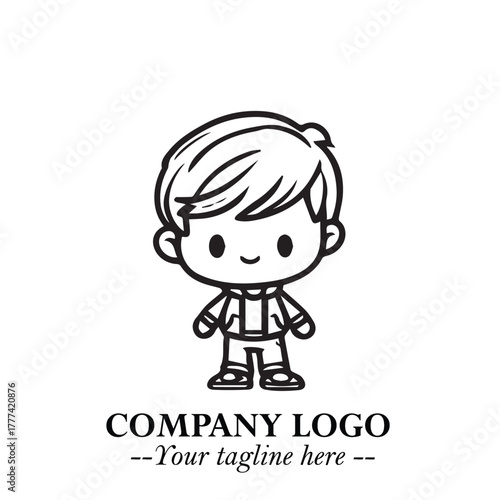 © Qoesanro, Obraz premium Black and White Chibi Boy Illustration with Jacket and Boots in Bold Thick Line Art Minimal Style