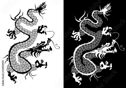 © Cienpies Design, Obraz premium Black and white chinese dragon vector.