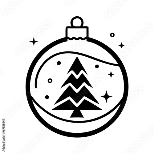 Obraz premium Black and white Christmas ornament with a silhouette of a tree and decorative...