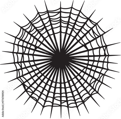 © PixelSaga MH2 , Fototapeta premium Black and white circular spider web graphic with radial spokes and concentric rings arachnid insect on transparent background