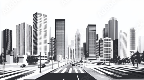 Fototapeta premium Black and White City Skyline Illustration with Urban Architecture Design