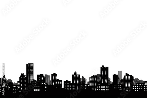 Naklejka premium Black And White City Skyline Silhouette On Transparent Background