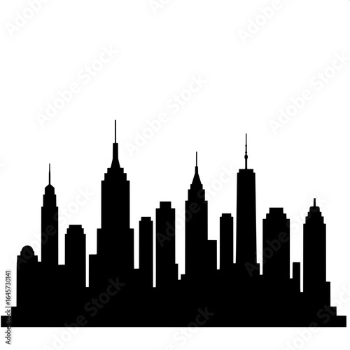 Naklejka premium Black and white city skyline silhouette with modern building shapes, for decoration and design.
