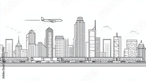 © Yothin, Fototapeta premium Black and White Cityscape Illustration with Train