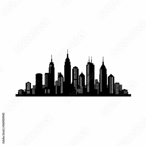 © mrvect02, Naklejka premium Black and White Cityscape Silhouette with Skyscrapers and Buildings on White Background