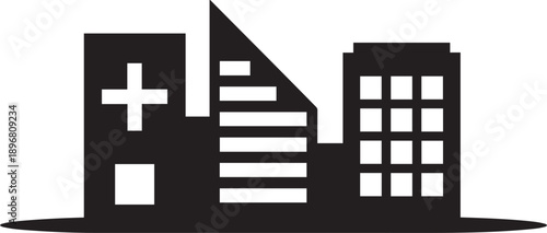 © RJ - Creativity, Obraz premium Black and white cityscape with two buildings architecture