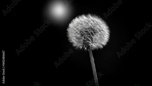 © MstJorina, Obraz premium Black and white close up of a dandelion seed head with soft light