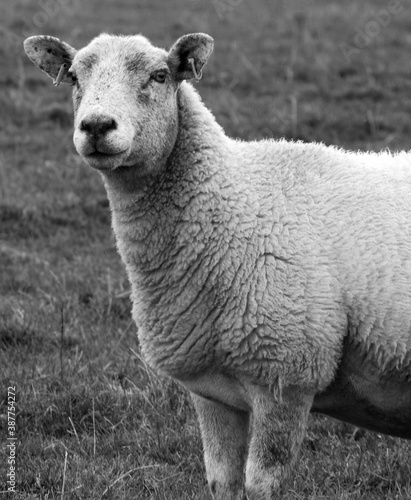 © Sarah, Obraz premium Black and white close up side facing sheep