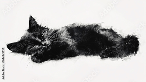 © Sudarshana, Obraz premium black and white closeup drawing of a sleeping cat in white background