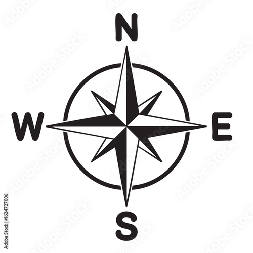© MD MOZAMMEL HAQUE, Naklejka premium Black and white compass rose with cardinal directions navigation north