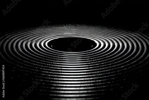 © Creatives, Obraz premium Black and white concentric circles, dark background