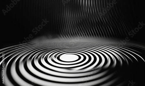 © AZIZAH ART Ai, Obraz premium Black and white concentric circles with falling lines.