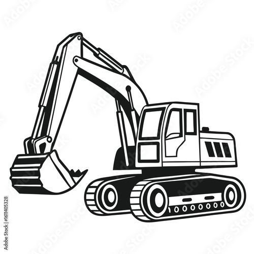 © PROBIR, Naklejka premium Black and White Construction Equipment Icon Set in Minimal Vector Style