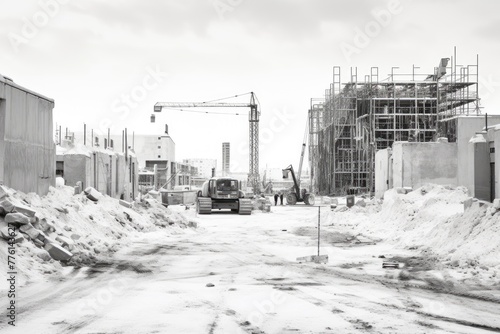 Fototapeta premium Black and white construction , monochrome picture of a construction site, construction site in black and white, AI generated
