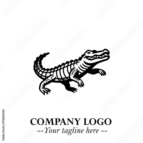 Obraz premium Black and White Crocodile Logo in Minimalist Modern Vector Design for...