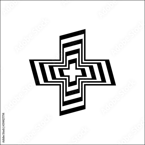© Thaimage, Obraz premium Black and white 3d cross symbol or plus sign on white background vector.