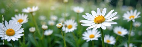© Sarayuth, Obraz premium Black and white daisies growing among white grass blades, white, colors