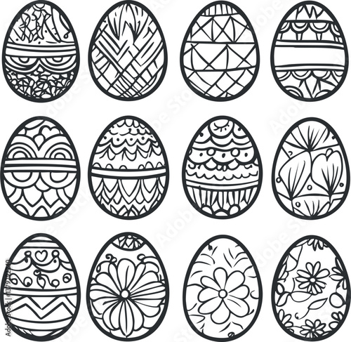 Fototapeta premium Black and white decorative Easter eggs with intricate patterns and floral designs.