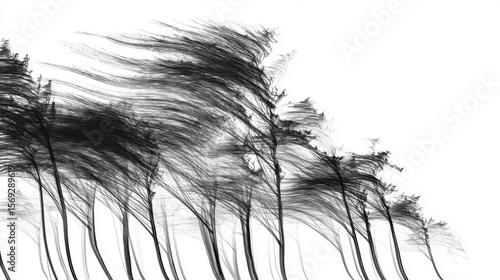 Obraz premium Black and White Digital Art: Abstract Lines of Wind in Trees
