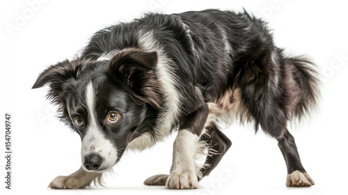Fototapeta premium Black and white dog, alert posture