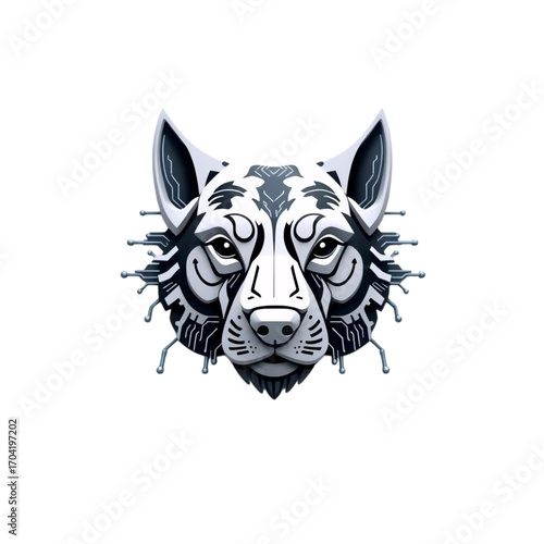 © El Zahra , Obraz premium black and white dog head illustration with abstract textured details and bold vector design