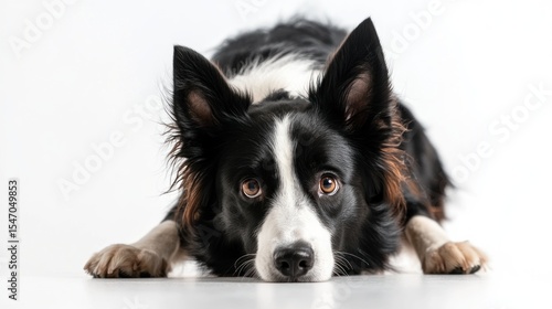 © BambangBudi, Fototapeta premium Black and white dog lying down