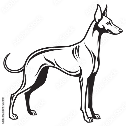 Obraz premium Black and White Dog Silhouette Standing Profile View 1