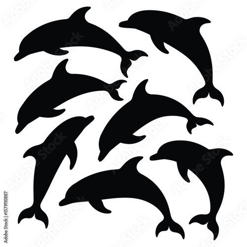 © MOSTLAKI, Naklejka premium Black and White Dolphin Illustration