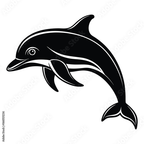 Obraz premium Black and white dolphin illustration simple vector design for marine life enthusiasts and graphic design projects suitable for various creative applications