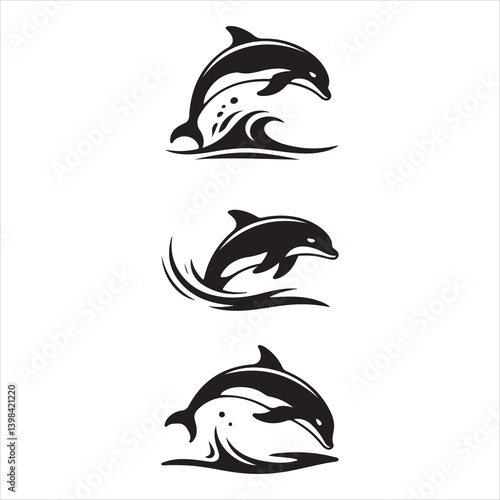 Naklejka premium Black and White Dolphin Silhouettes for Wildlife, Ocean, and Aquatic Designs