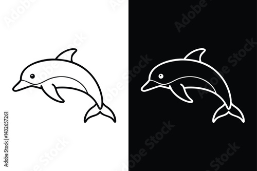 © Nezamur, Fototapeta premium Black and White Dolphin Vector. Simple Jumping Dolphin Icon