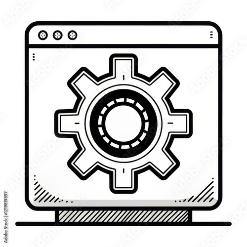 © Touch Heart Photo, Obraz premium Black and White Doodle Gear Icon in Browser Window, Web Development, UI Design Web Design, Software Development