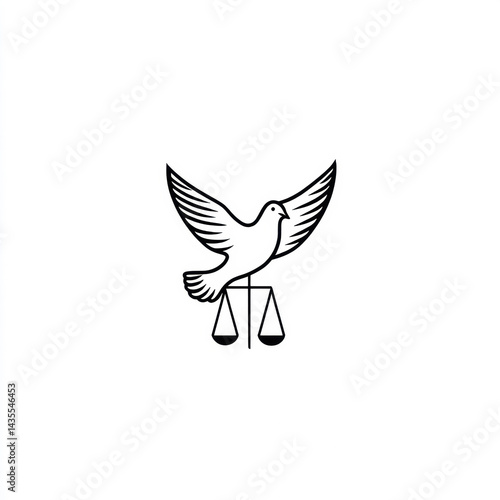 Obraz premium Black and White Dove Illustration with Scales of Justice