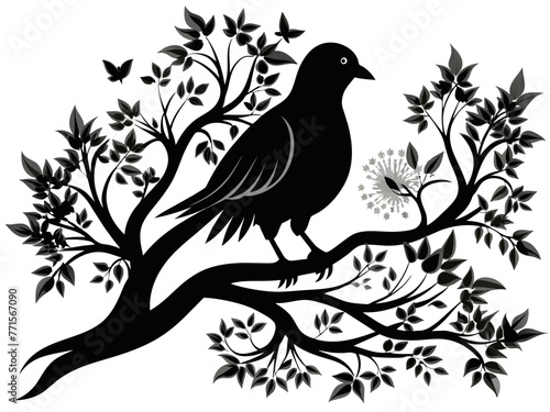 Obraz premium Black and white dove on a tree branch vector.