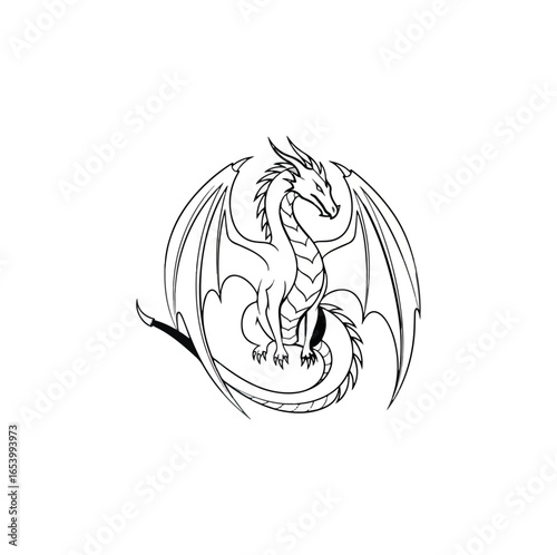 © Andriyani, Naklejka premium Black and white dragon graphic design