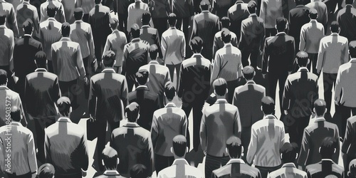 Obraz premium black and white drawing crowd people back view walk to race rat hopeless work majority business man algorithm control