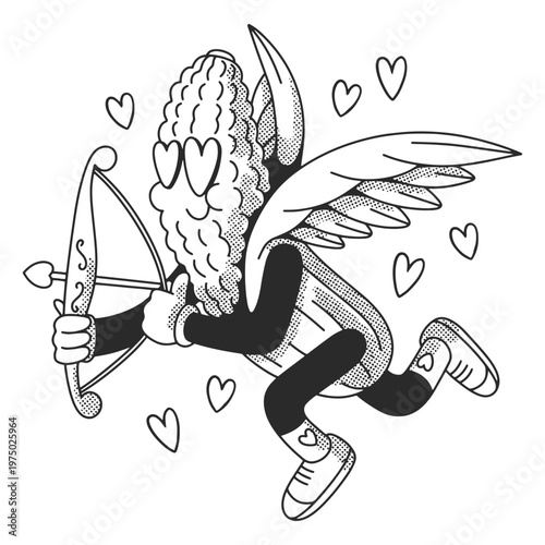 Fototapeta premium Black and white drawing of an angel with a bow and arrow