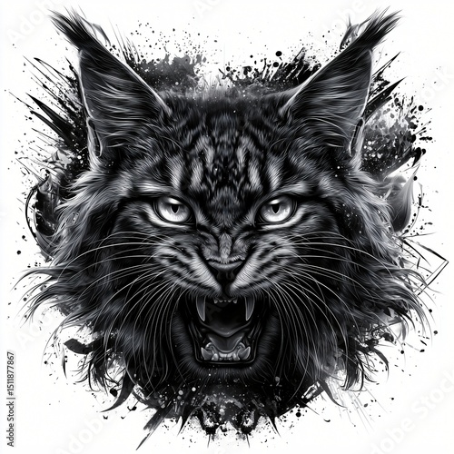 © tzu, Obraz premium Black and white drawing of Cat head