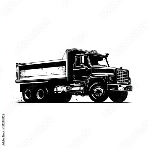 Fototapeta premium Black and white dump truck illustration
