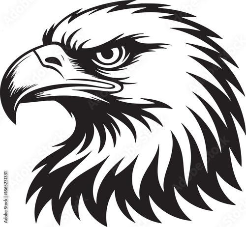 © VectorStock, Fototapeta premium Black And White Eagle Head Illustration With Sharp Beak And Feathers