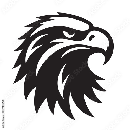 © dropideas, Obraz premium Black and white eagle head with sharp beak.