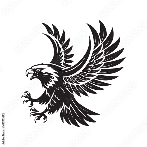 Obraz premium Black and White Eagle Landing Illustration