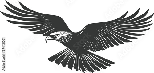 Obraz premium Black and white eagle with outstretched wings in flight illustration. Vector illustration