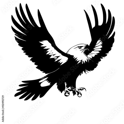 Fototapeta premium "Black and White Eagle with Spread Wings Vector"